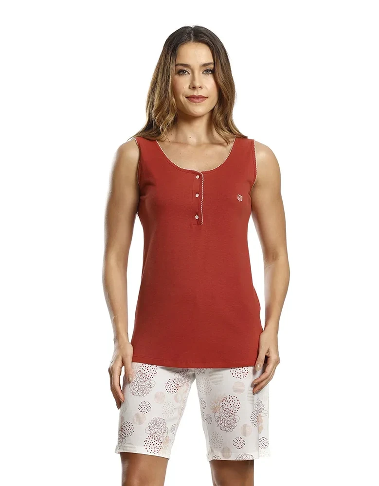 Pijama com abertura peitoral e bermuda Coral Paulienne