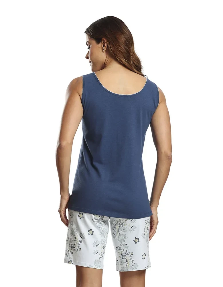 Pijama com abertura peitoral e bermuda Flora Paulienne