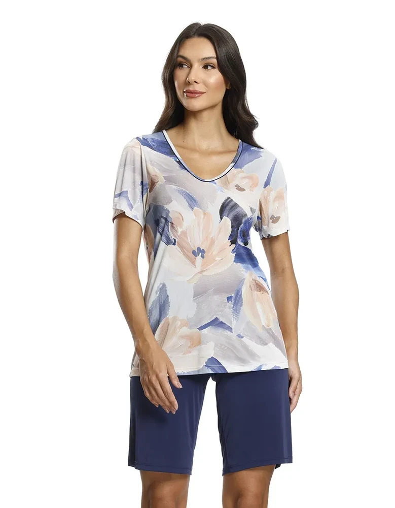 Pijama liganete manga curta com bermuda Aquarele Paulienne