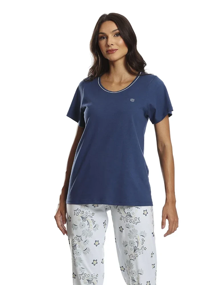PIJAMA MANGA CURTA COM CALÇA FLORA PAULIENNE