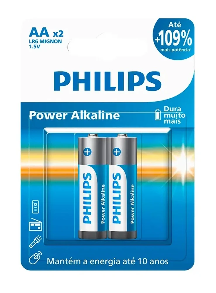 Pilha Alcalina Pequena AA 2x1 - Philips: energia confiável para dispositivos essenciais