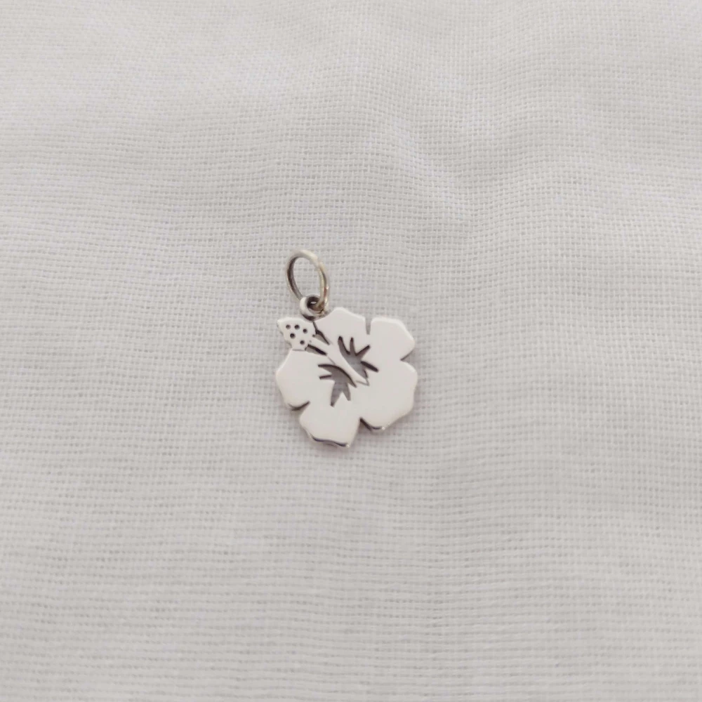 Pingente de Prata 950, recortado no formato da flor de hibisco.