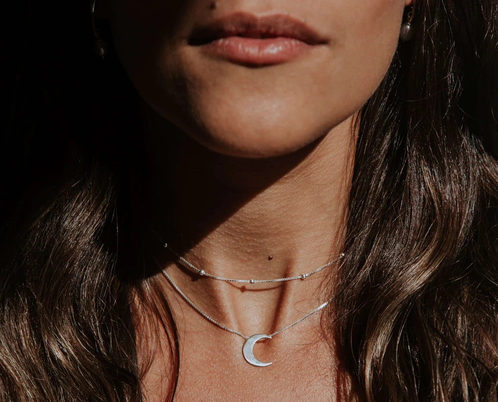Pingente de Prata 950, recortado no formato de lua.