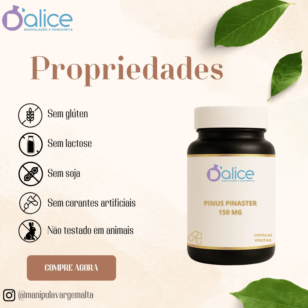 O Pinus pinaster 150 mg é um suplemento natural com potente ação antioxidante, circulatória e rejuvenescedora, derivado da casca do pinheiro francês (Pinus pinaster Aiton).