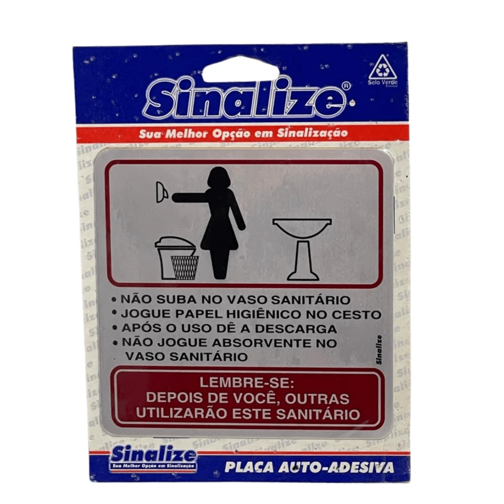 Garanta a organização e o uso correto do banheiro feminino com a placa de alumínio Sinalize, ideal para condomínios, escritórios e estabelecimentos comerciais. Com 12x12cm, esse sinal indicativo auto-adesivo orienta de forma clara e objetiva os procedimentos essenciais, promovendo higiene e respeito ao próximo.