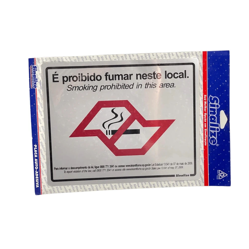 Garanta um ambiente livre de fumaça com a Placa Sinalize "É Proibido Fumar Neste Local" 25x20cm, ideal para empresas, estabelecimentos comerciais, hospitais e espaços públicos. Produzida em material resistente e auto-adesivo, oferece fácil fixação em qualquer superfície, com durabilidade superior para sinalizar de forma clara a proibição do fumo, contribuindo para a segurança e saúde de todos.