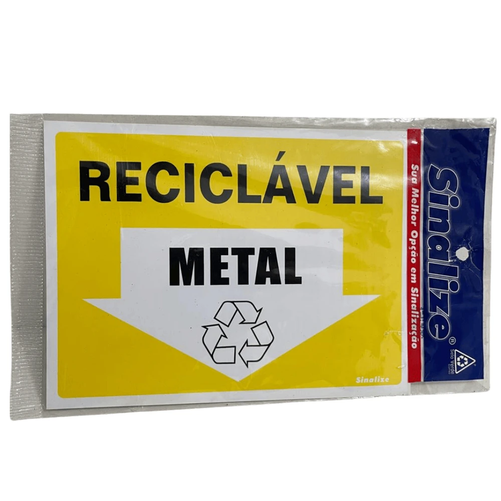 Placa Sinalize Indicativa Material Reciclável Metal 15x20: sinalização prática e eficiente para ambientes industriais, comerciais ou residenciais. Fabricada em material resistente, essa placa destaca-se pelo design claro e objetivo, facilitando a identificação dos locais de descarte correto de metais recicláveis.