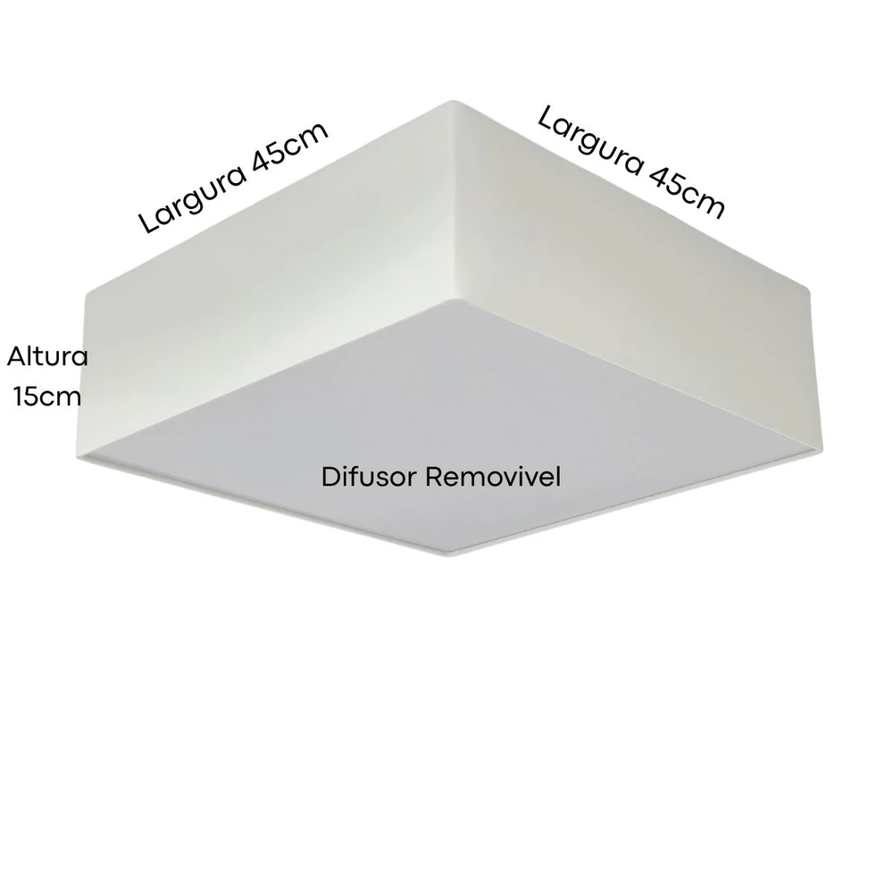 Ideal para quem busca iluminação sofisticada e aconchegante. Com medidas de 45x45x15 cm, seu design compacto e neutro se integra facilmente a diversos estilos de decoração, valorizando ambientes residenciais e comerciais. Sua estrutura bivolt suporta até 3 lâmpadas LED de 12W (não inclusas), proporcionando economia e iluminação eficiente. A cúpula em tecido garante uma luz difusa, confortável para salas, quartos e escritórios, criando um clima acolhedor. Invista em um plafon que alia funcionalidade, durabilidade e estética para transformar a iluminação com um toque de elegância natural.