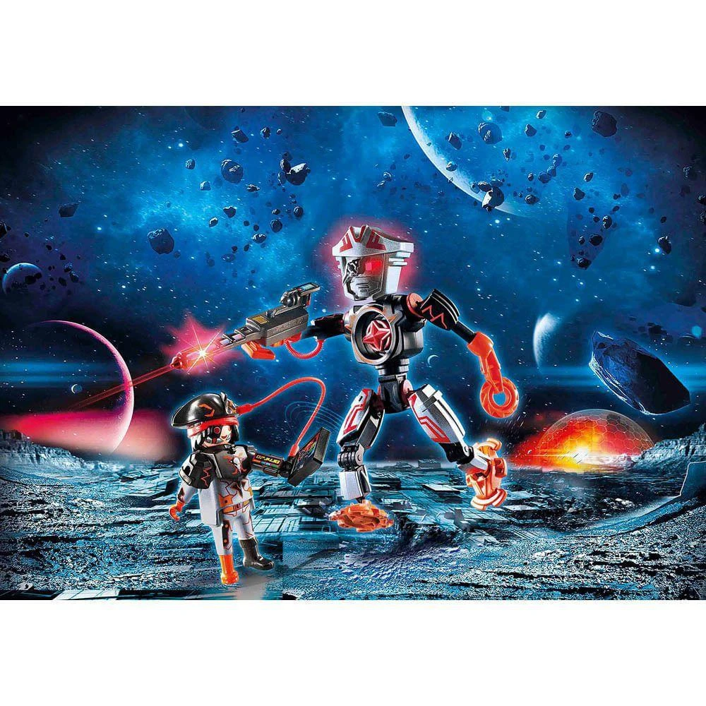 O capitão da tripulação do pirata espacial tem um robô de combate ao seu lado. Este robô não é apenas extremamente ágil, mas pode até operar um lançador a laser. Se a polícia espacial conseguir remover a bússola vermelha, sua fonte de energia, que está no meio de seu corpo, ele fica imediatamente incapacitado de operar. Claro que o capitão pirata fará todo o possível para evitar isso. 2 BATERIAS LR41