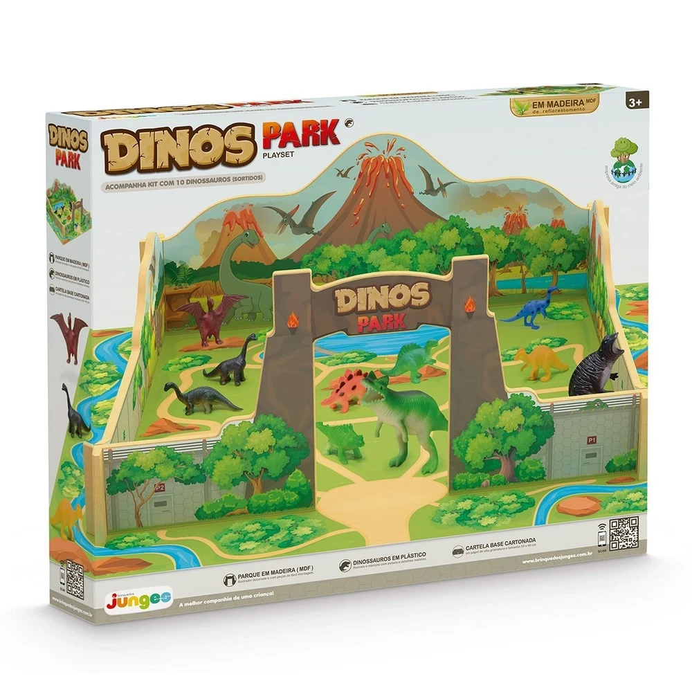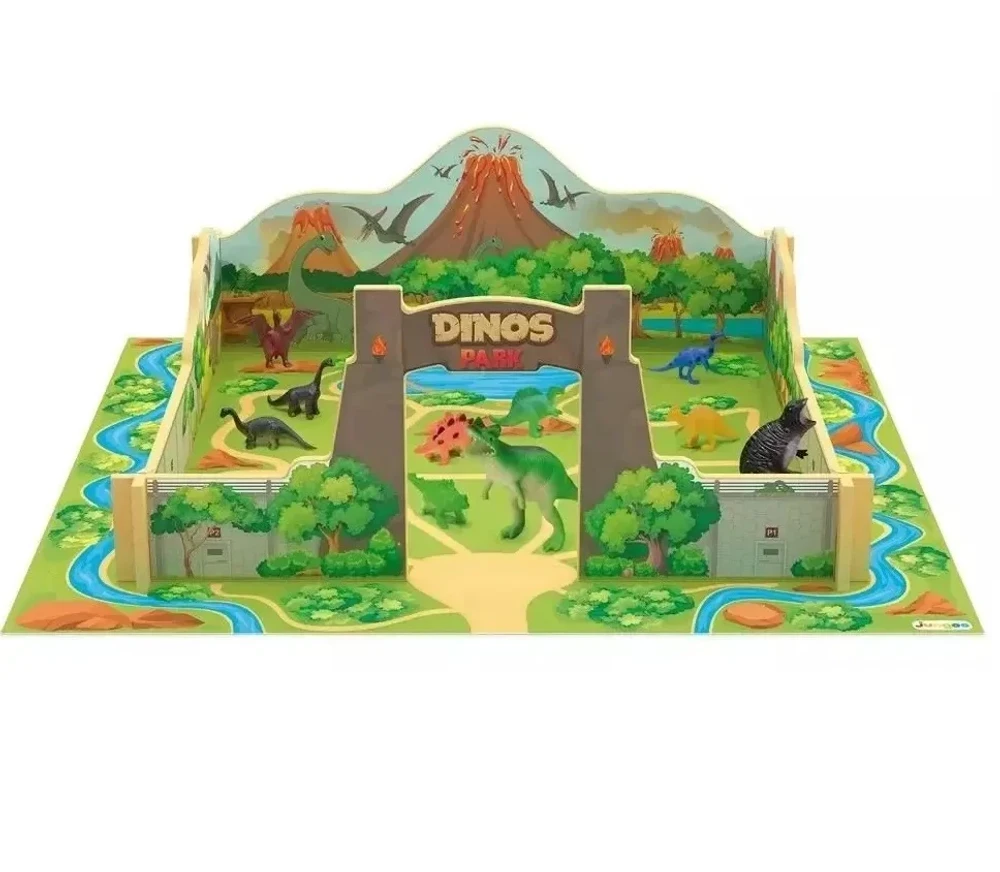 O Playset Dinos Park da Junges é um brinquedo de construção que combina diversão, criatividade e sustentabilidade. Produzido em MDF de reflorestamento com pintura atóxica e ilustrações temáticas de dinossauros, apresenta acabamento cuidadoso e design envolvente. Com 10 dinossauros em plástico maciço e cercas decorativas, o playset estimula a imaginação, a coordenação motora e a exploração sensorial, permitindo que a criança recrie aventuras pré-históricas de forma lúdica e educativa.