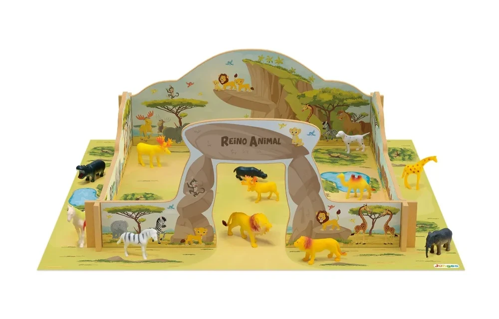 O Playset Reino Animal da Junges é um brinquedo de construção que une diversão, aprendizado e sustentabilidade. Produzido em MDF de reflorestamento com pintura atóxica e ilustrações temáticas, apresenta acabamento detalhado e design atraente que tornam a brincadeira envolvente. Com 12 animais em plástico maciço e cercas para decoração, o playset estimula a criatividade, a coordenação motora e a exploração sensorial, permitindo que a criança recrie cenários do reino animal de forma lúdica e educativa.