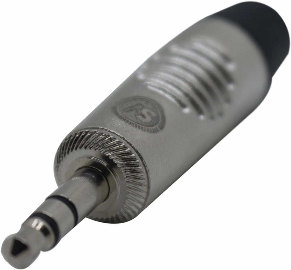 Plugue TRS (tip-ring-sleeve) de 3,5 mm (¼” menor: 3,5 mm) que permite conexão estéreo ou balanceada.