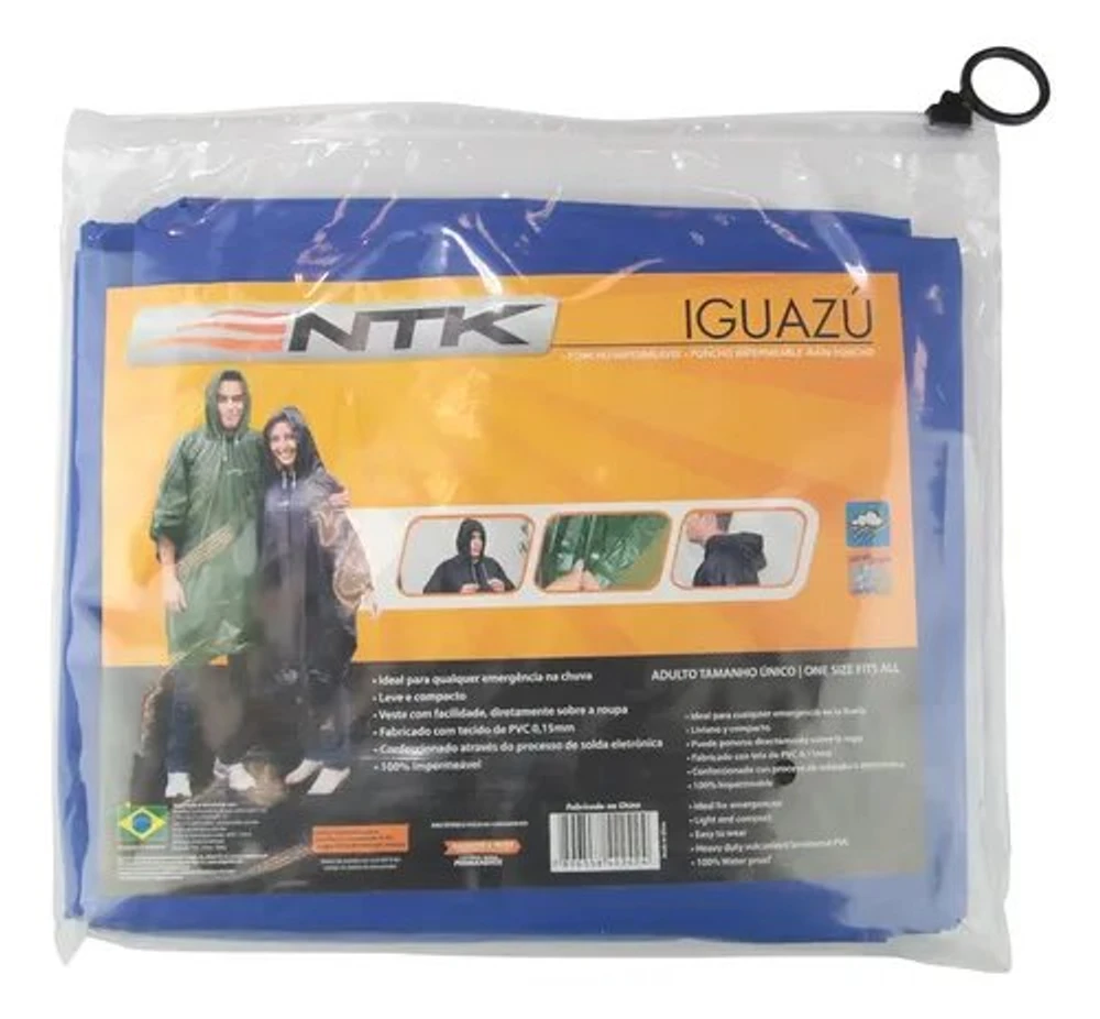 🟢 O Poncho Iguazu Azul da NTK garante proteção rápida e eficaz — vista sobre qualquer roupa e fique seco mesmo em chuvas intensas.