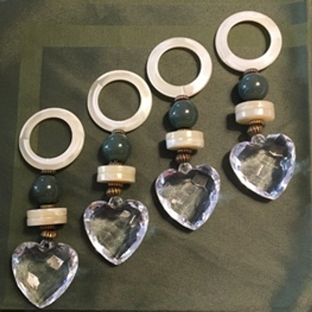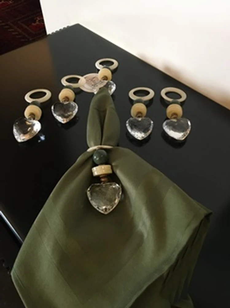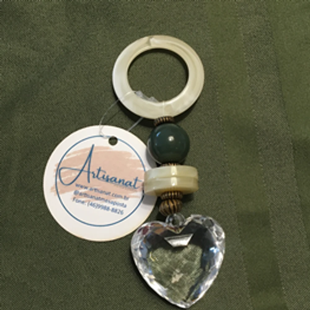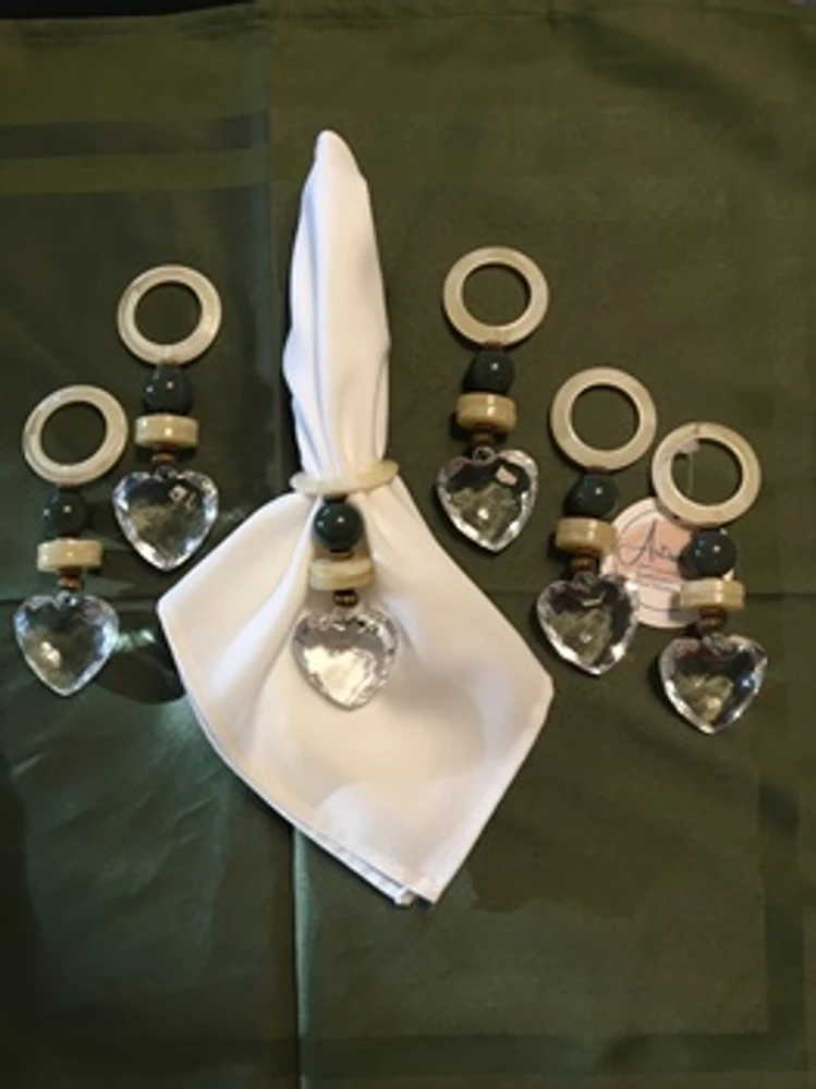 Porta Guardanapo feito em coração cristal e bolas vermelhas.