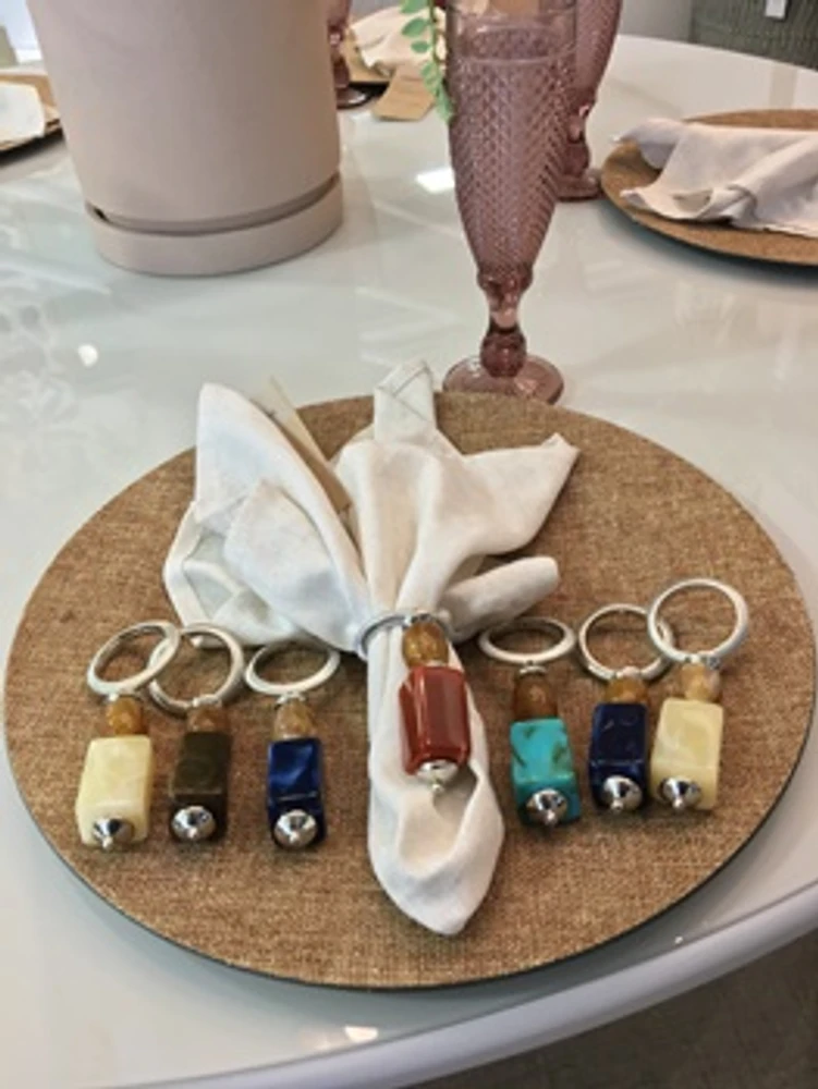 Porta Guardanapo feito com resinas marmorizada e argilas em níguel.