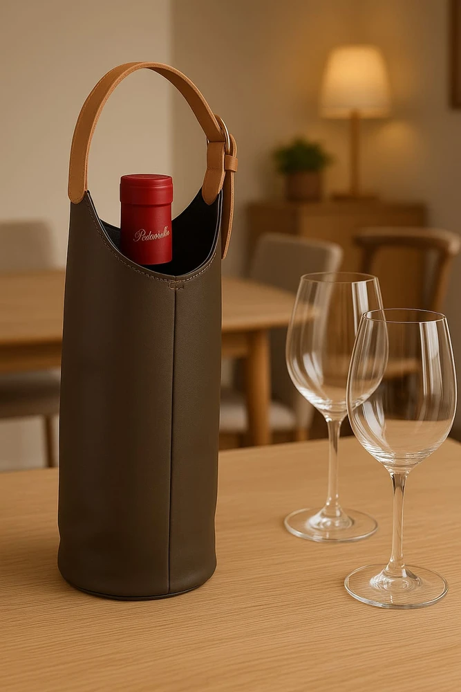 Transforme o simples ato de transportar seu vinho em uma experiência única, com um acessório que expressa seu bom gosto e atenção aos detalhes.