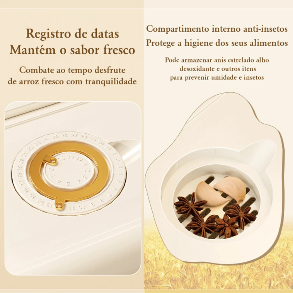 Armazenamento hermético – protege contra umidade e conserva os grãos frescos por mais tempo
