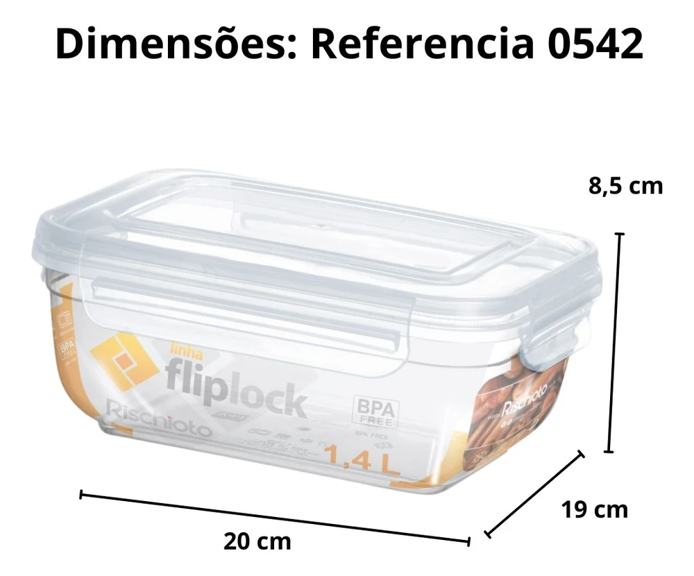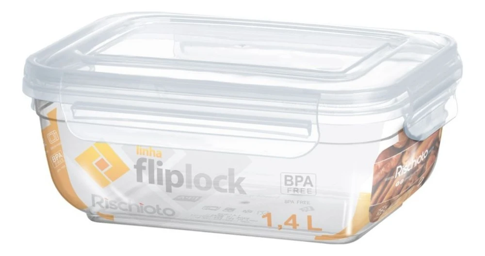 POTE RETANGULAR FLIPLOCK 1,4 LITROSReferência: 0502Medidas: 19 x 20 x 8,5 cmPote retangular alto com travas nos 4 lados. Além de versátil, possui ótima resistência e um design elegante. Confeccionado em material atóxico e livre de BPA (produto é livre de bisfenol A). Pode ser levado ao micro-ondas, lava-louças, congelador ou freezer. Existe um Fliplock para cada necessidade. Escolha o seu!