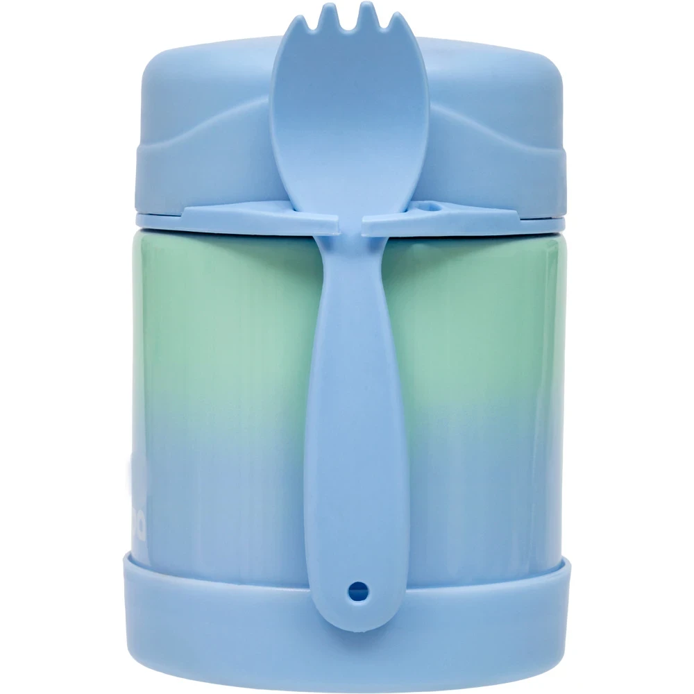 O Pote Térmico com Colher Degrade Azul da Buba é ideal para conservar a temperatura dos alimentos, seja quente ou frio, por até 5 horas, perfeito para refeições fora de casa. Produzido em aço inoxidável com parede dupla, é resistente e higiênico, ideal para armazenar papinhas, frutas e legumes. Acompanha talher e suporte para facilitar o uso durante passeios e viagens.