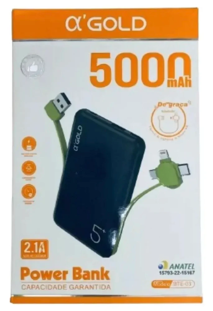 é um carregador portátil compacto com capacidade de 5.000 mAh, ideal para quem busca mobilidade e recargas de emergência para smartphones e acessórios.