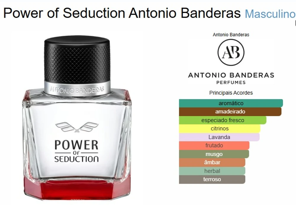 Descubra o poder da sedução com o Eau de Toilette masculino Power of Seduction, de Antonio Banderas. Esta fragrância única combina notas aromáticas e amadeiradas com um toque fresco e especiado, ideal para o homem confiante e moderno. Seu acorde principal envolve elementos cítricos, lavanda e âmbar, criando uma experiência olfativa marcante e sofisticada.