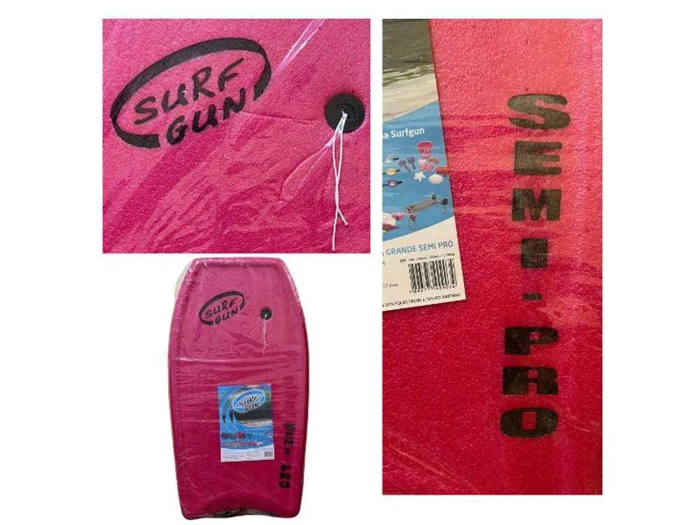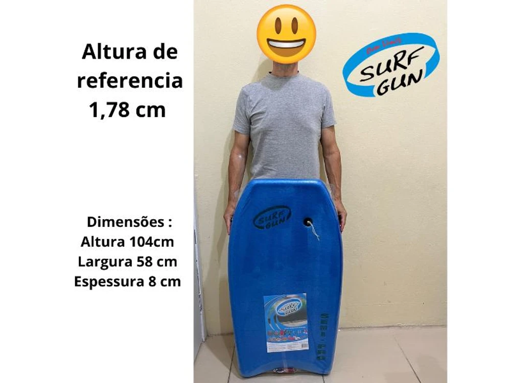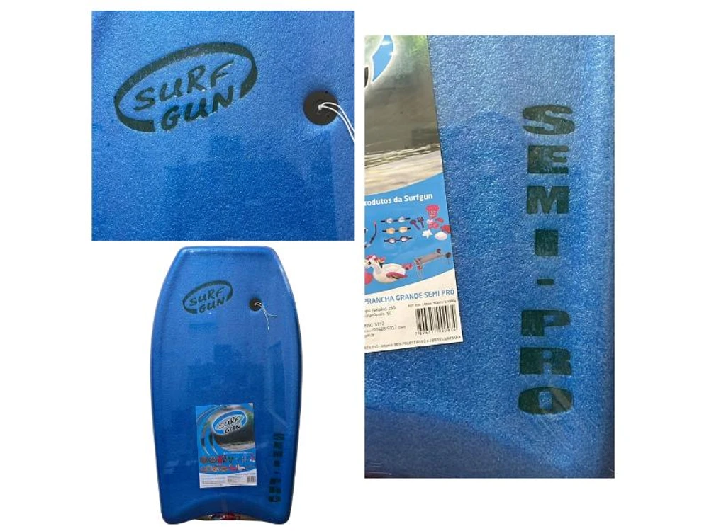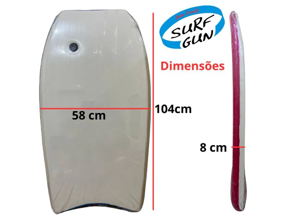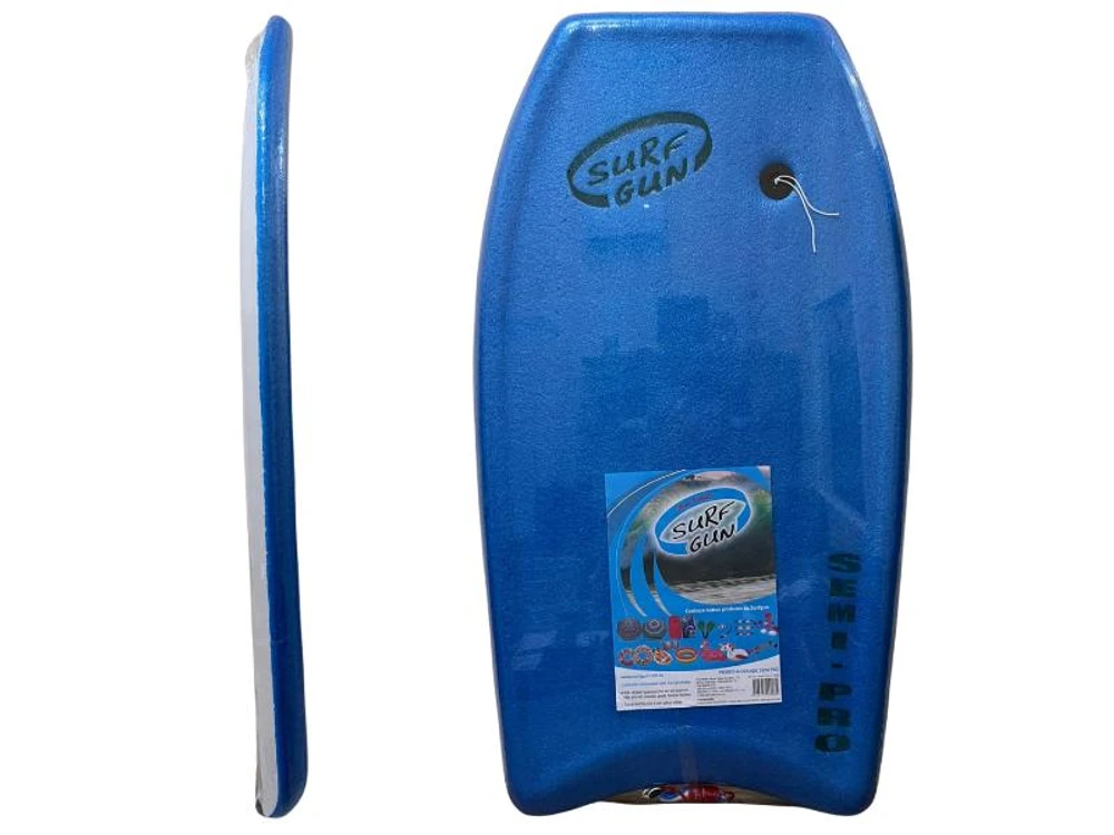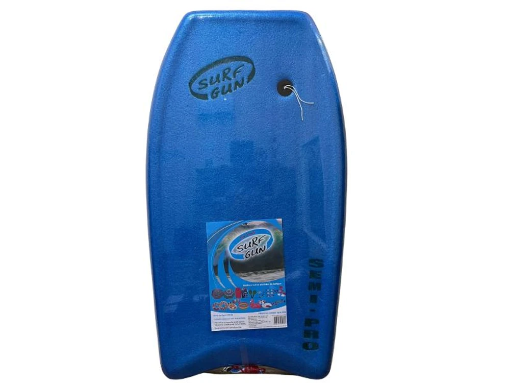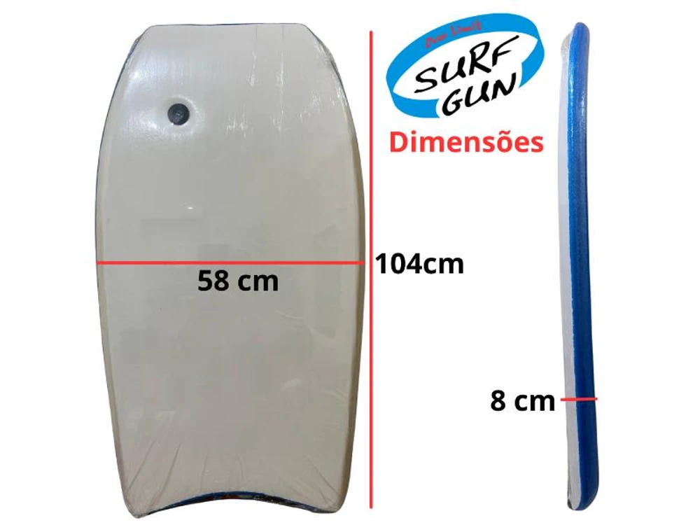 Tenha mais emoção da prancha bodyboard modelo grande Semi Pro da Surf Gun. Com um comprimento de 104 cm e largura de 58 cm, esta prancha é perfeita para aqueles que estão começando a sua jornada no bodyboard. Temos duas cores a disposição azul e vemelho, cores vibrantes e bonitas. adiciona um toque de estilo, mas também aumenta a visibilidade na água.
