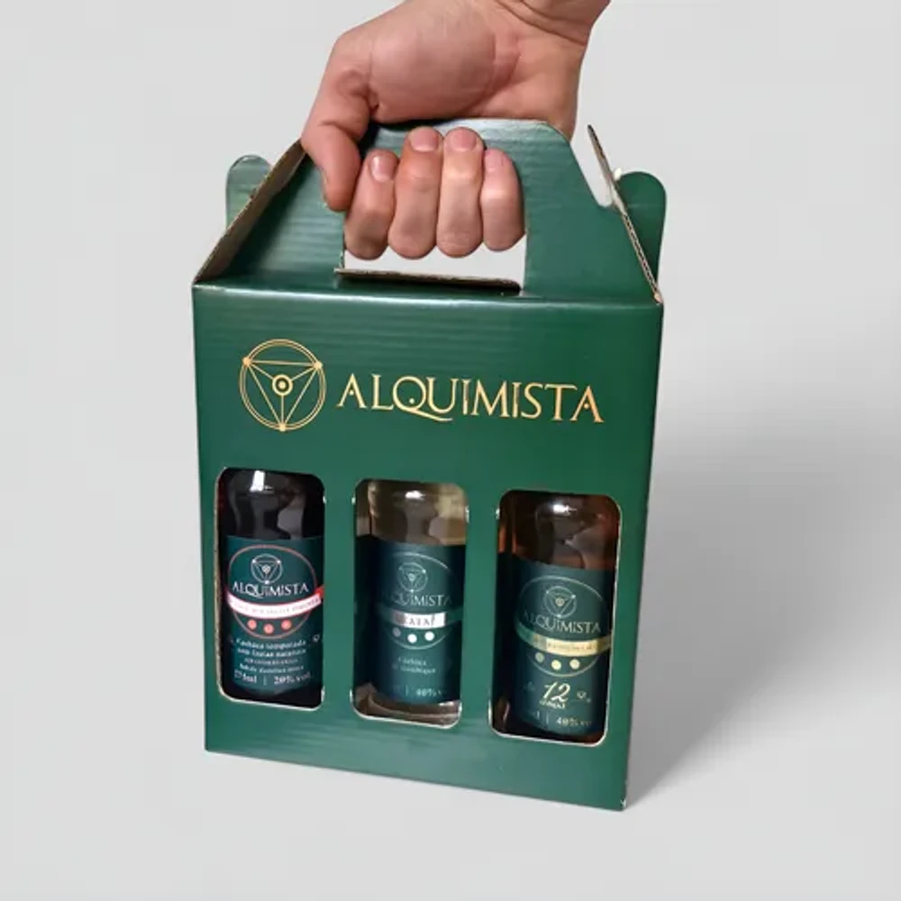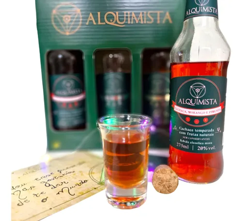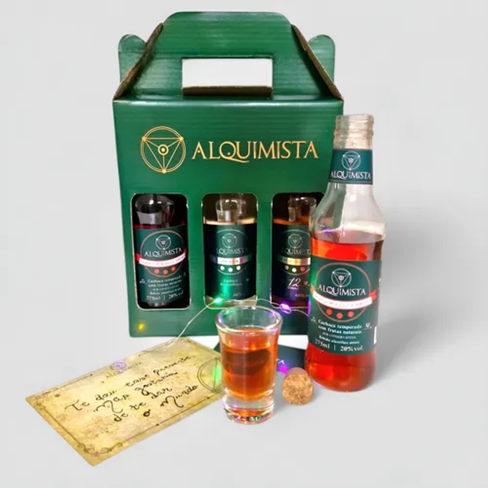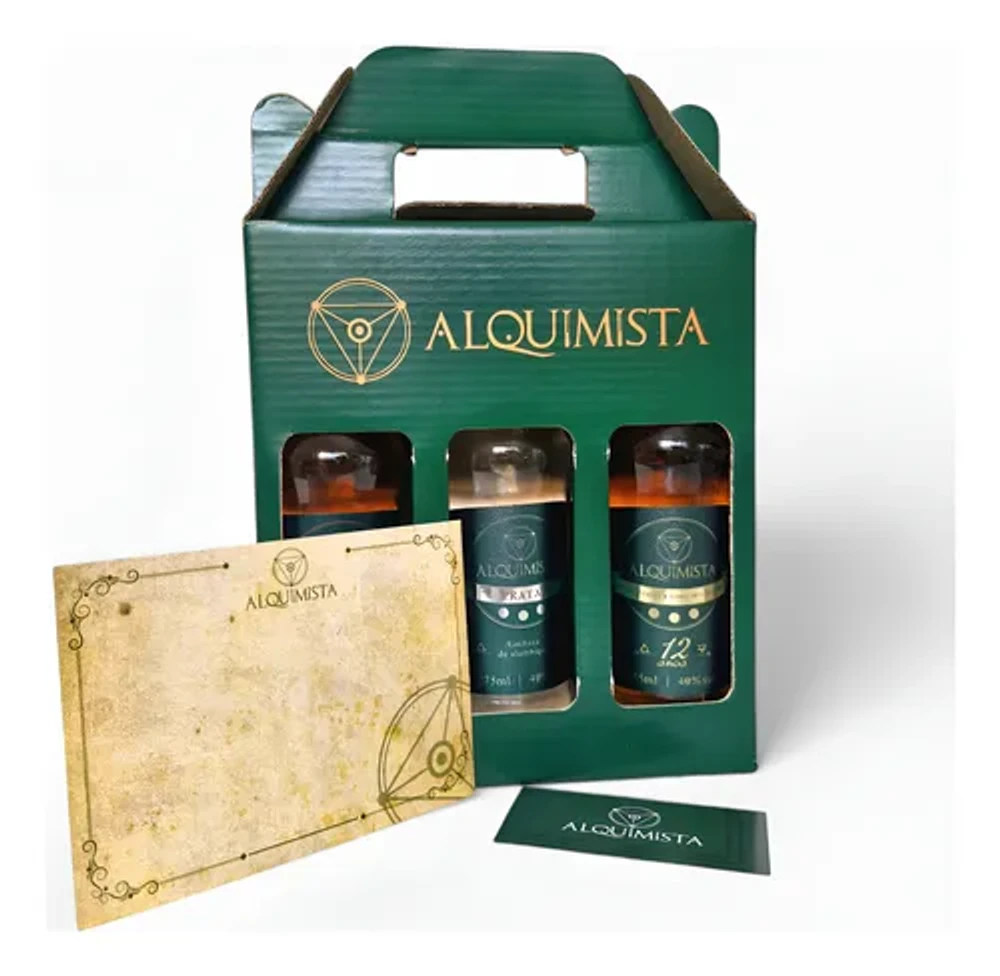 ✔️ 3 garrafas de cachaças Alquimista (275ml) – escolha os sabores e monte seu kit