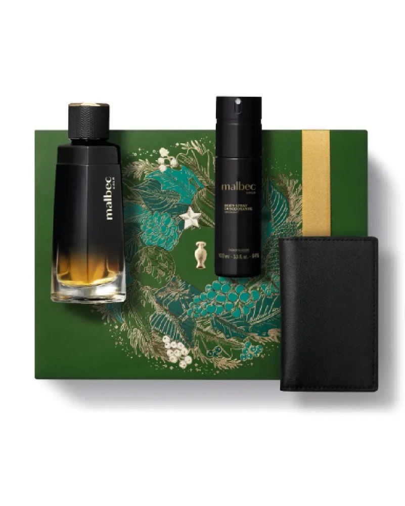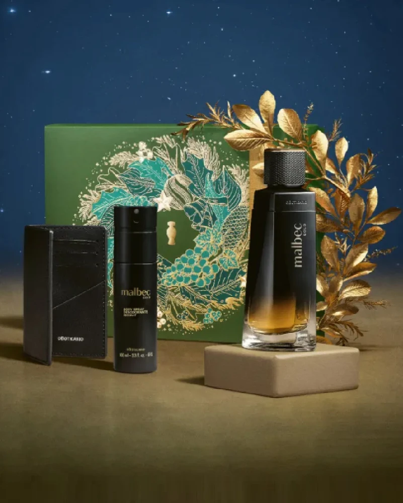O Kit Presente Natal Malbec Gold conta com uma fragrância masculina hipnotizante que marca, sendo ideal como um presente para homem de muita personalidade. Ele vem com três itens embalados em uma caixa de presente, sendo um deles uma elegante nécessaire, para fazer parte do dia a dia: