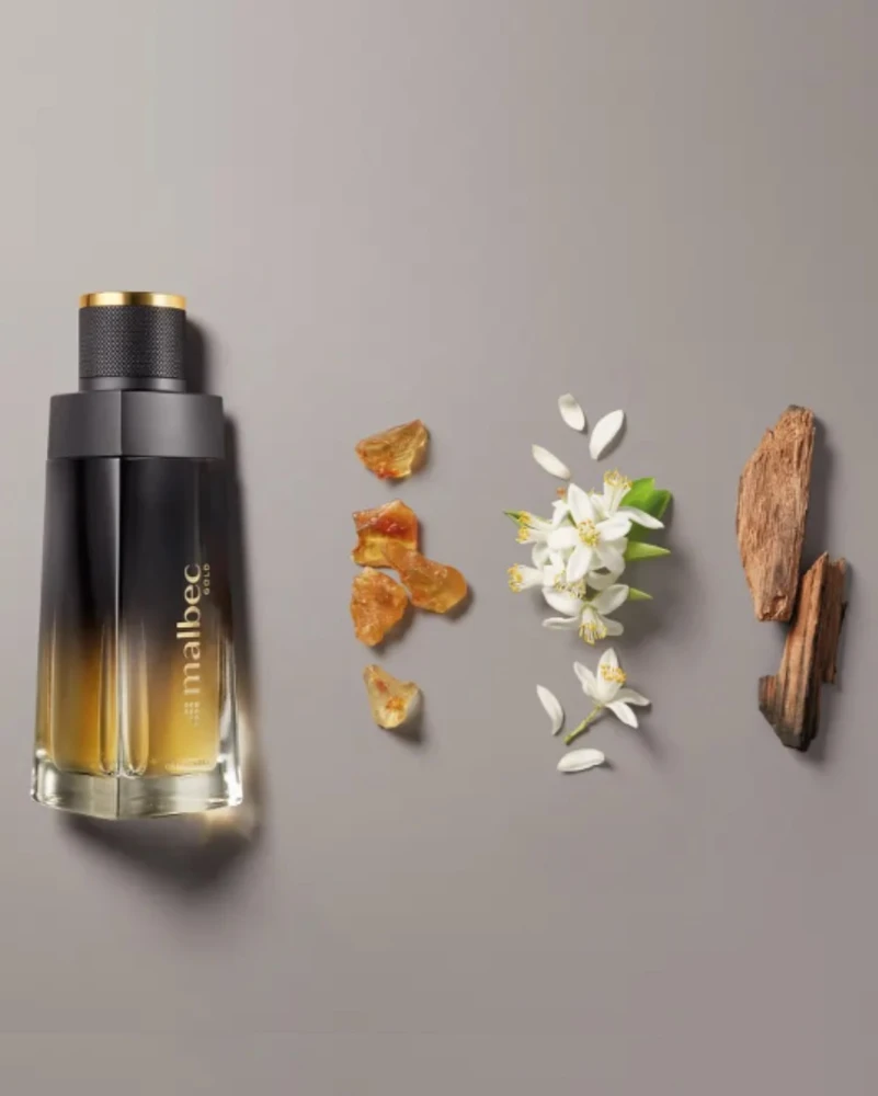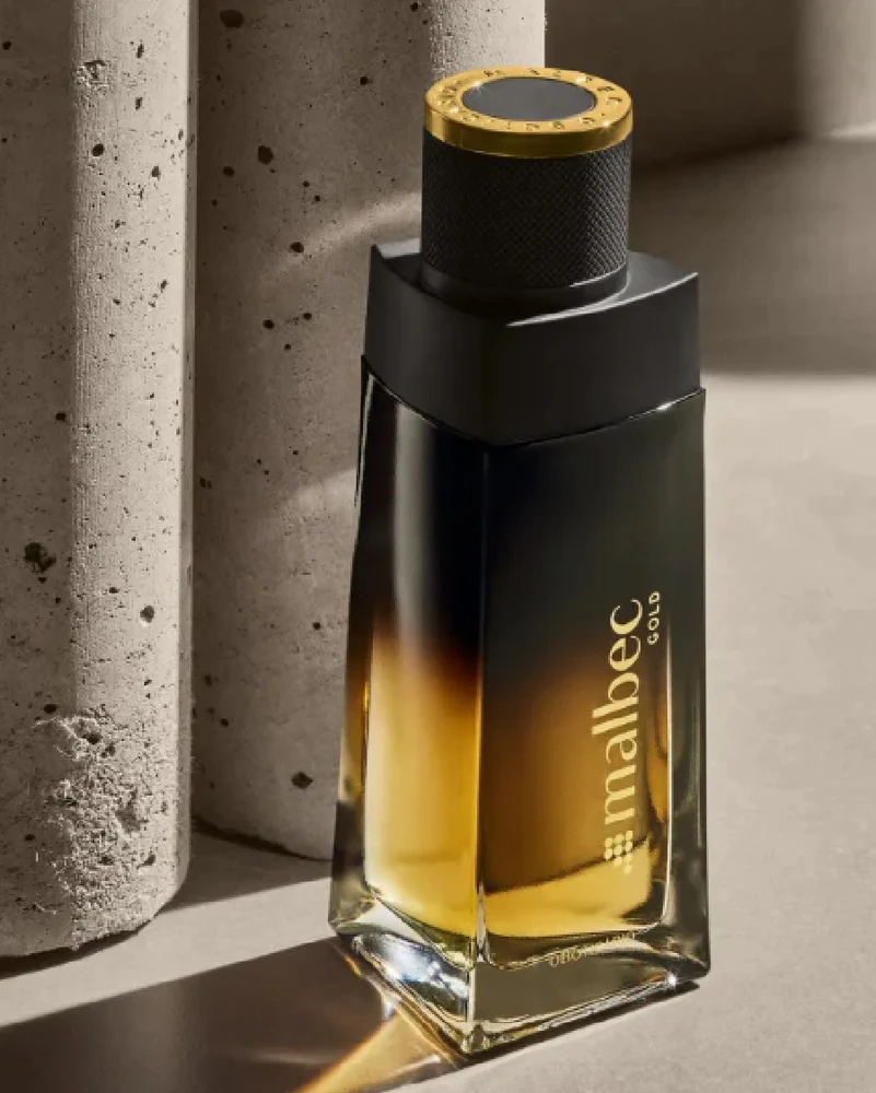 DESODORANTE COLÔNIA: Malbec Gold Desodorante Colônia é uma fragrância masculina cheia de surpresas com ingredientes tão valiosos quanto o ouro.Malbec Gold é uma fragrância intensa e marcante, capaz de aumentar o seu poder de atração com o Acorde Liquid Gold: elaborado com a exclusiva tecnologia Goldsense, somada às madeiras ambaradas e às notas mais cativantes do patchouli.