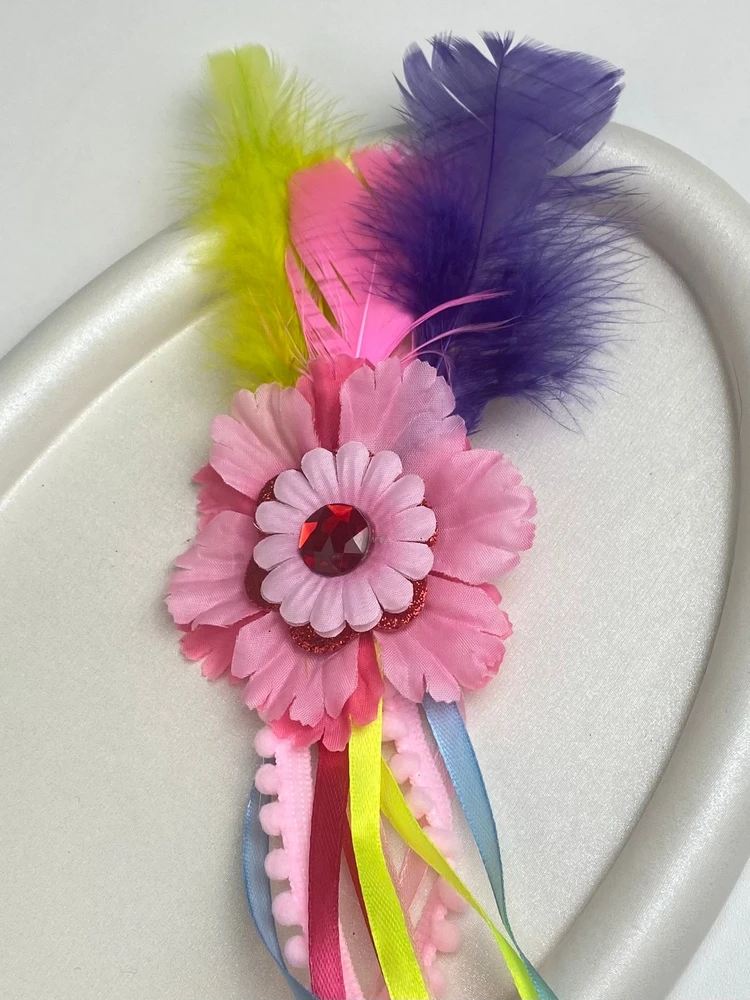 A Presilha Feminina Isadora Carnaval com Flor, Plumas e Fitas Decorativas é o acessório ideal para quem deseja criar produções alegres, vibrantes e cheias de personalidade. Desenvolvida com composição rica em detalhes, ela traz flor central em camadas com aplicação de pedra decorativa, plumas volumosas e fitas alongadas que garantem movimento e destaque ao visual.
