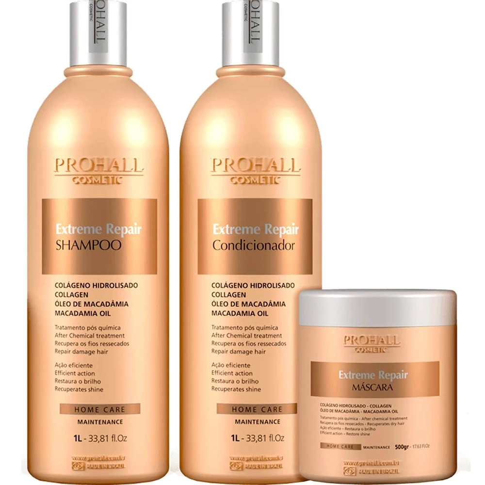 1 - Após lavar os cabelos com o shampoo, aplique a MÁSCARA EXTREME REPAIR PROHALL sobre os cabelos lavados.