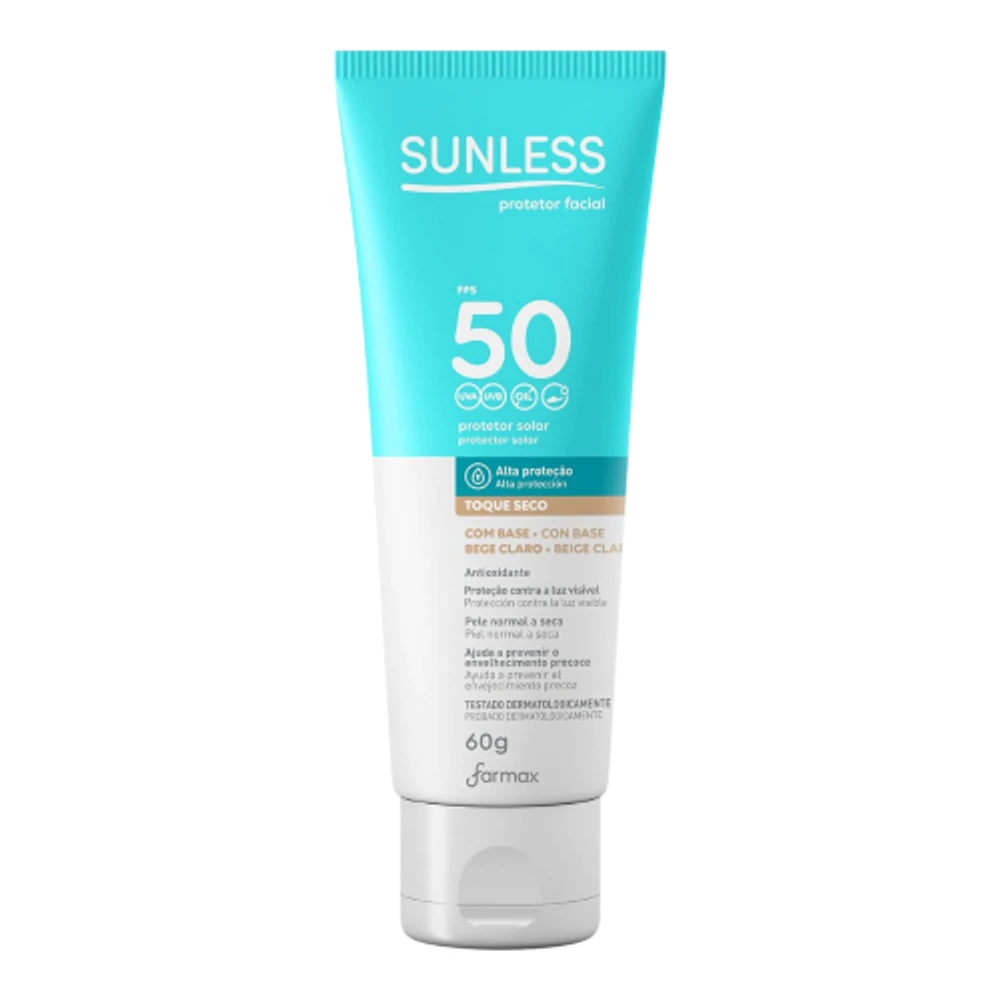 Protetor Solar Sunless FPS 50 Toque Seco 60g Base Bege Claro