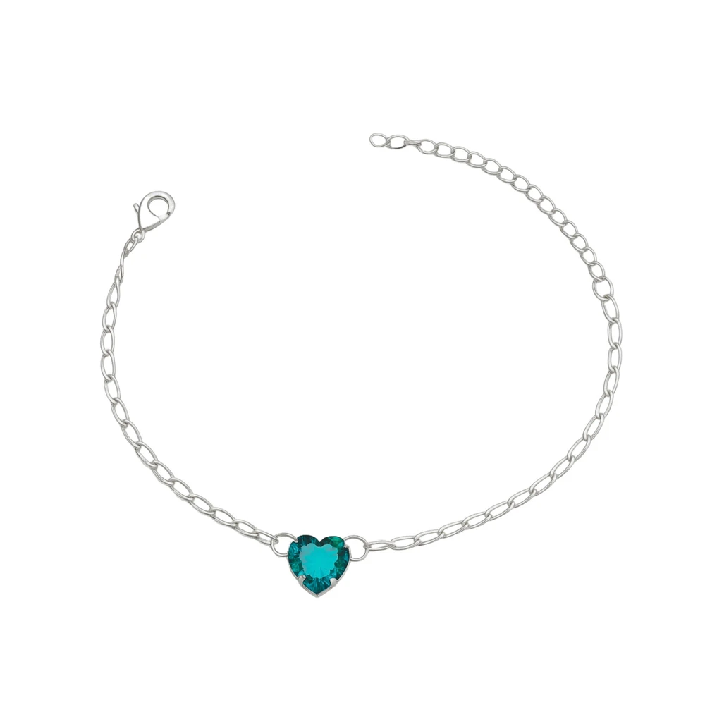 Pulseira Coração Verde - Banhada em prata 925