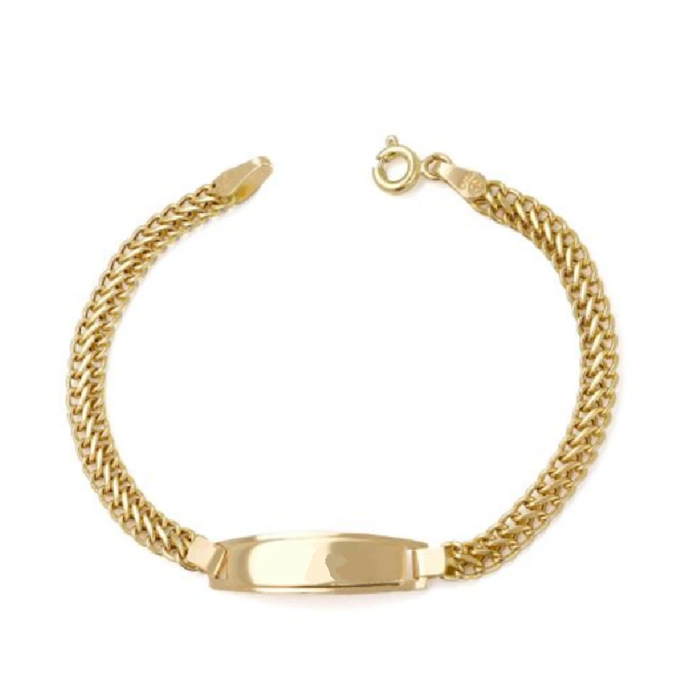 Pulseira feminina infantil em ouro 18k, , chapinha lisa para escrever nome. Fecho tipo boia e com trava de segurança.