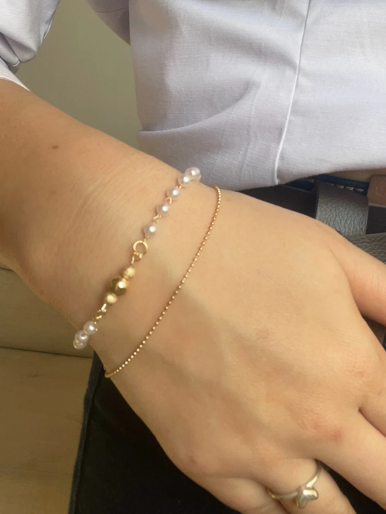 Pulseira delicada com detalhes em Pérola e Pingente de Bolinha Fosca