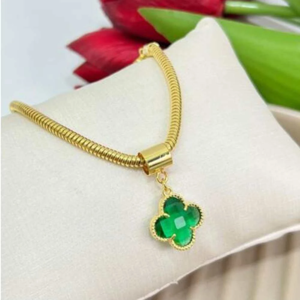 Pulseira Dourada Inspiração Trevo Alhambra- Verde