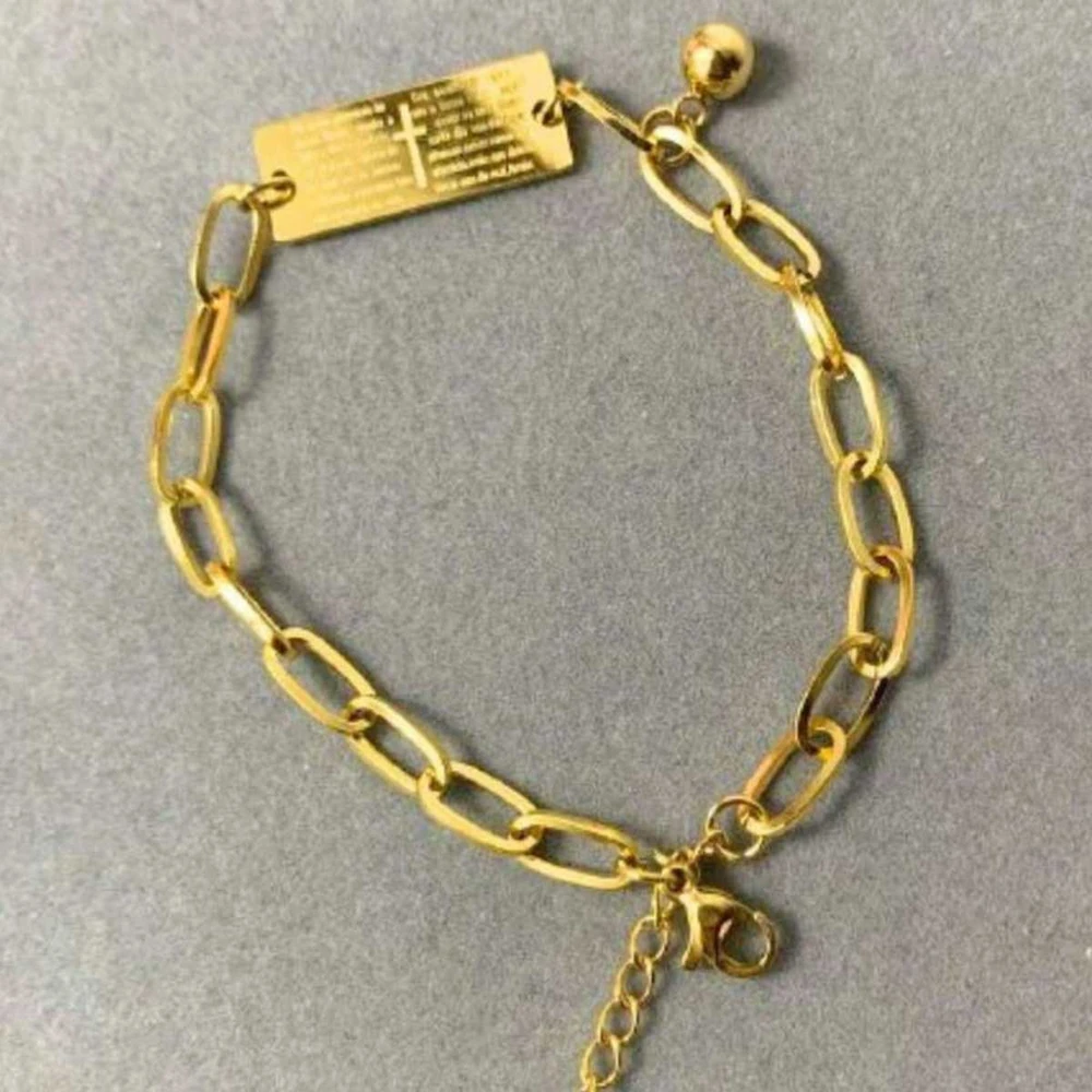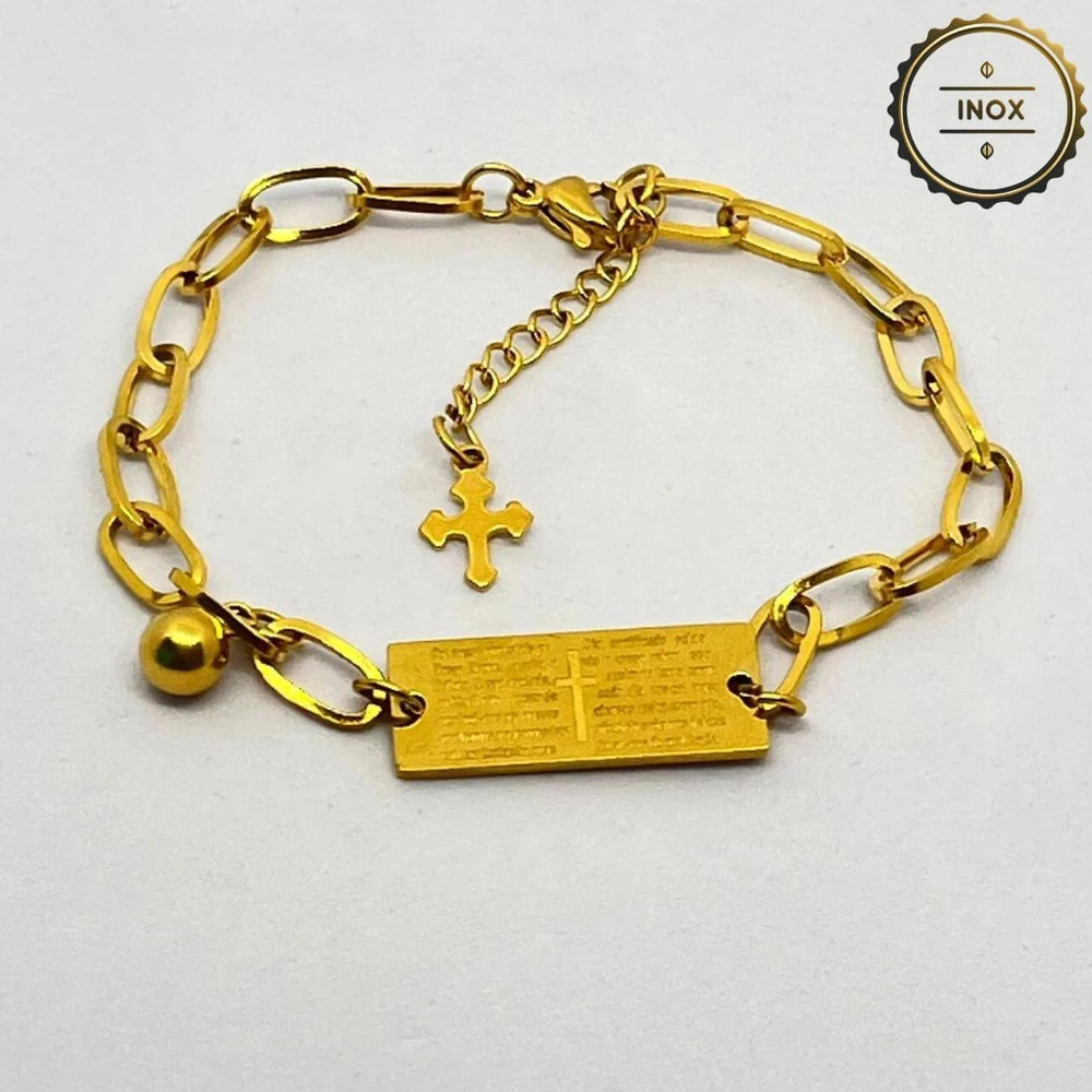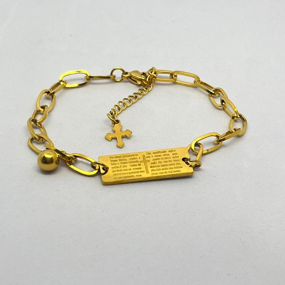 Pulseira Dourada Oração Pai Nosso - Aço Inox