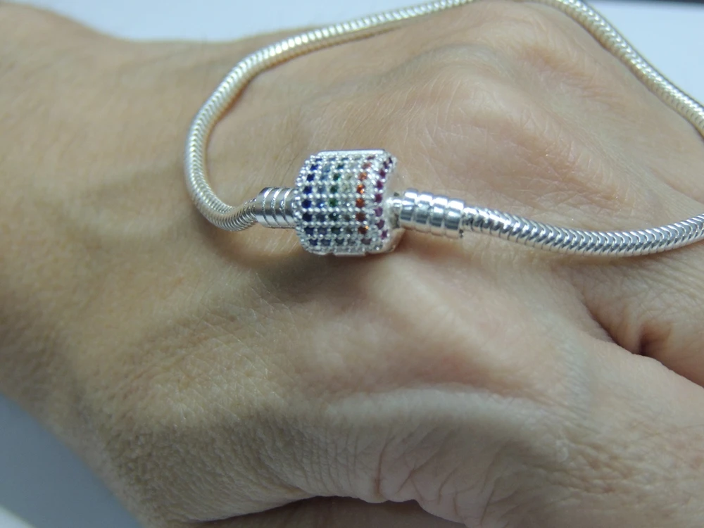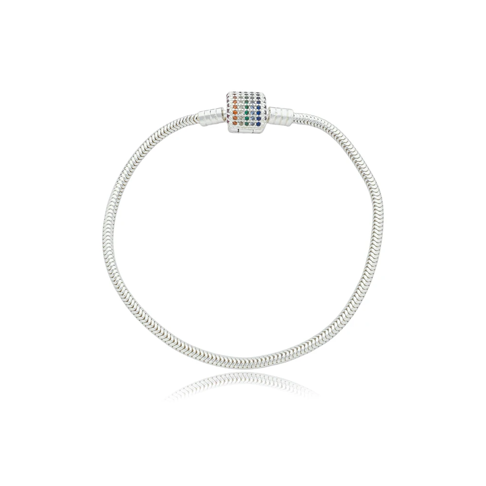fecho cravejado de zircônias na cor Arco Írirs, para