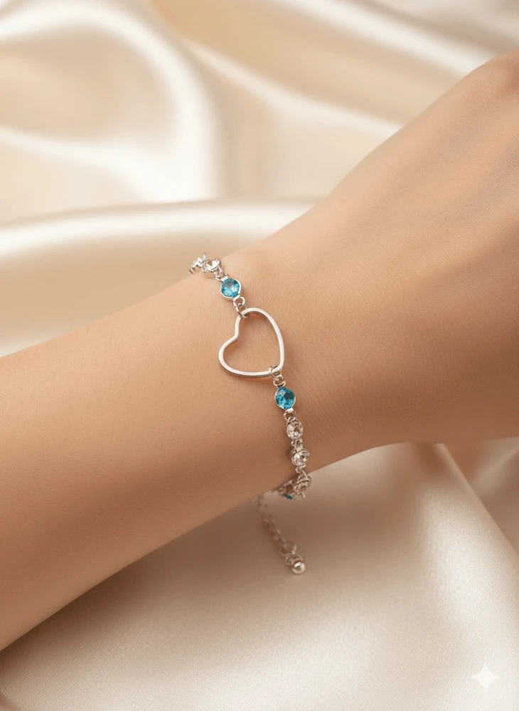 Pulseira feminina com pingente de coração vazado