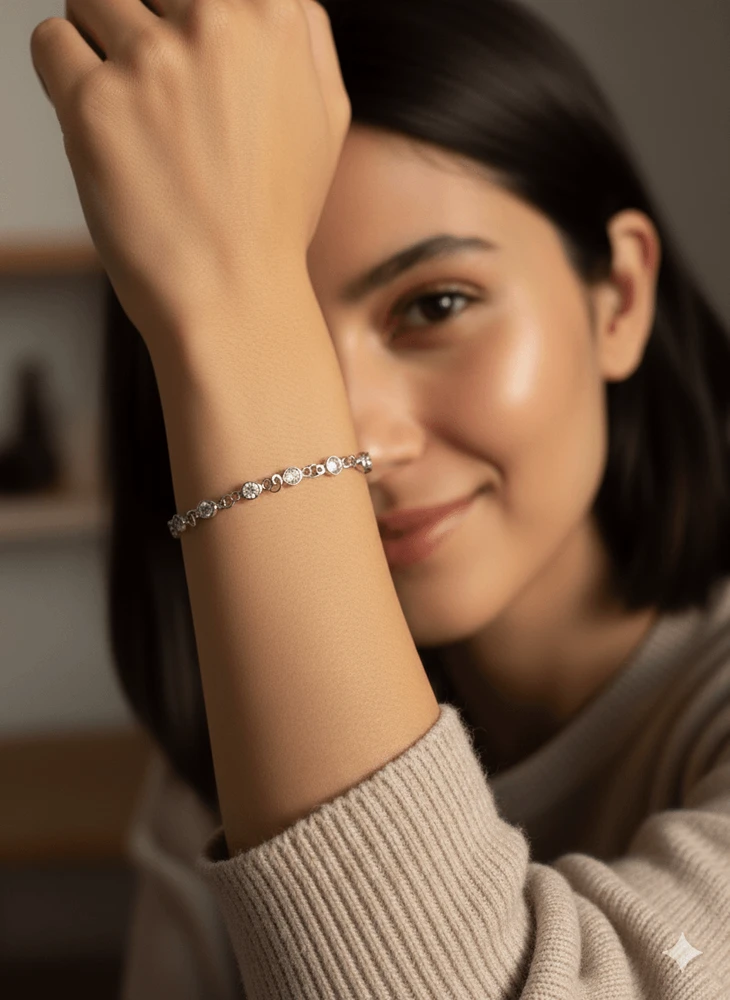 Uma pulseira delicada que traz brilho na medida certa e valoriza qualquer produção.