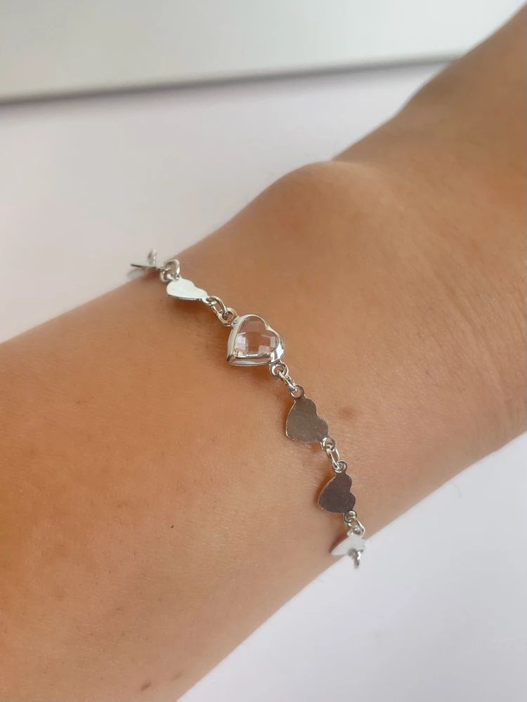 Pulseira Prateada com Mini Corações – Milena Bijoux | Delicada e Romântica