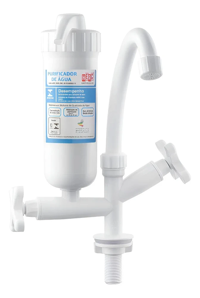 Purificador de Mesa e Torneira Bica Móvel com Arejador Fixo para Cozinha - Herc Água limpa e fresca sem sabores indesejados. Um modelo de fácil instalação que encaixa na bancada da sua cozinha. Com design moderno e versátil, possui duas saídas de água, permitindo que você escolha entre lavar a louça ou utilizar água filtrada para sua hidratação. A bica móvel garante mobilidade para direcionar o jato de água e tornar a sua rotina mais prát