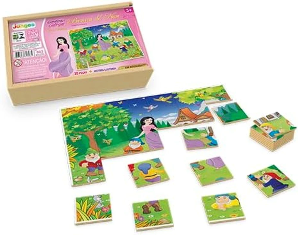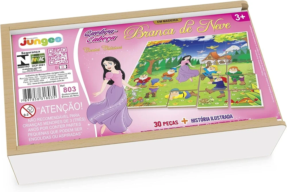 O Quebra-Cabeça Branca de Neve com Estojo da Junges é perfeito para estimular o raciocínio lógico, a concentração e a atenção das crianças. Com 30 peças em MDF de 5,5 x 4,5 cm cada, impressas diretamente na madeira com acabamento de alta qualidade, o jogo garante durabilidade e resistência. Ideal para momentos de diversão educativa, o quebra-cabeça permite que os pequenos desenvolvam habilidades cognitivas enquanto se divertem montando a imagem da Branca de Neve.