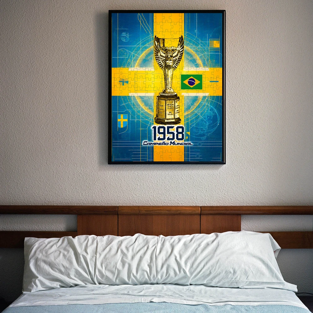 Este quebra-cabeça é a opção ideal para quem busca algo único, seja para decorar sua casa, escritório, bares esportivos, empresas ou até presentear um amigo ou familiar apaixonado pela história do futebol. Com sua arte exclusiva e temática histórica, ele se torna uma peça decorativa perfeita para ambientes que respiram futebol e esporte. Deixe-se envolver pela nostalgia da Copa do Mundo de 1958 e faça parte dessa jornada de recordações com um produto que une diversão, história e arte de uma forma inesquecível. Seja para inspirar conversas em um bar esportivo ou para adicionar um toque de emoção à decoração de um escritório, esse quebra-cabeça será sempre um destaque.