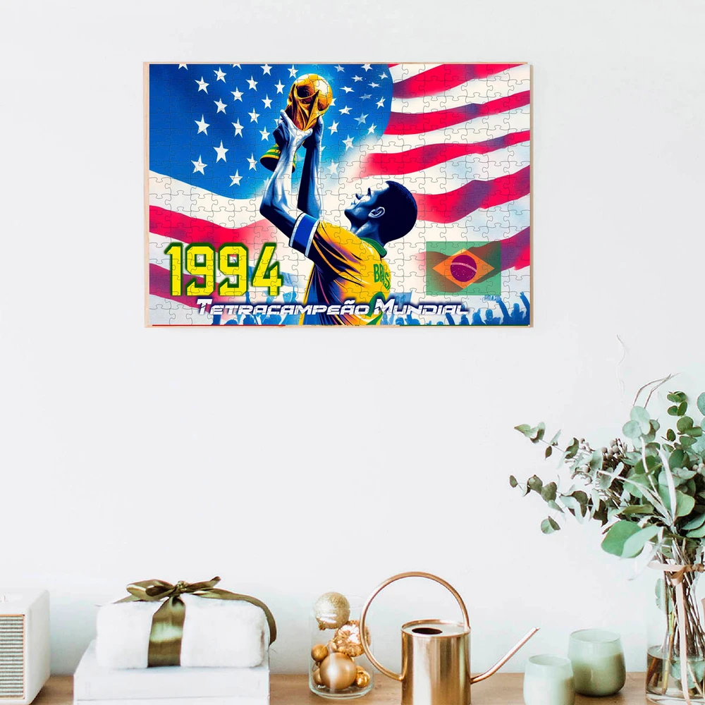 O Quebra-cabeça Coleção Copa do Mundo 1994 é perfeito para decorar sua casa, escritório, bares esportivos ou presentear alguém que viveu a emoção daquele momento inesquecível. Deixe-se levar pela nostalgia do tetra e eternize essa conquista com um produto que une diversão, arte e a rica história do futebol brasileiro.