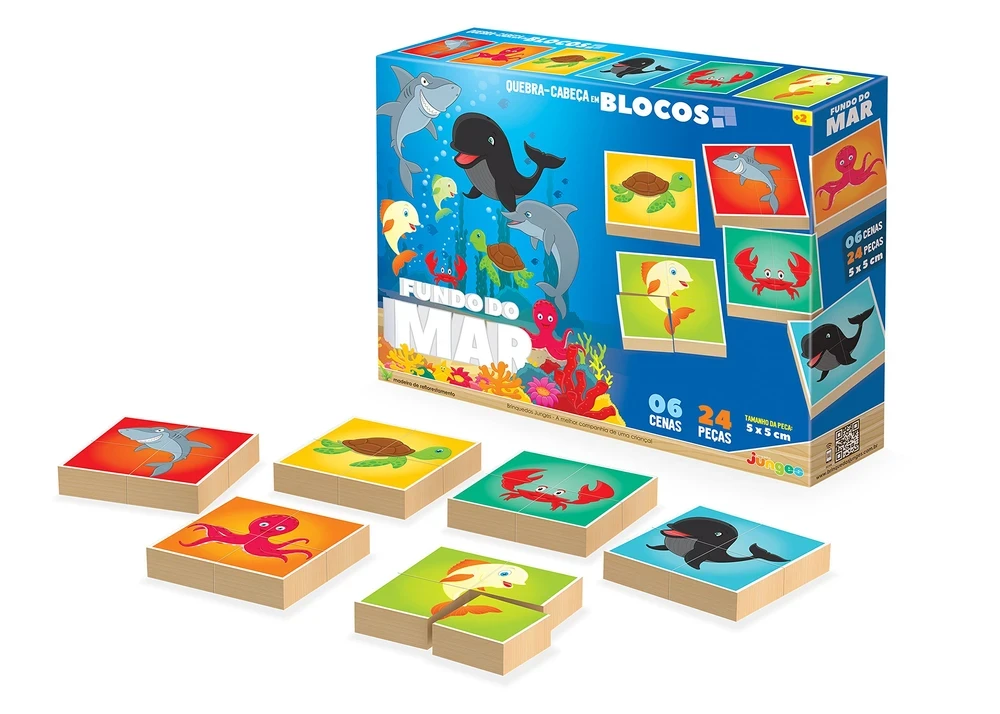 Com o Quebra-Cabeça em Blocos Fundo do Mar Junges, a diversão se transforma em aprendizado, desenvolvendo habilidades cognitivas, motoras e percepção visual de forma lúdica e educativa!