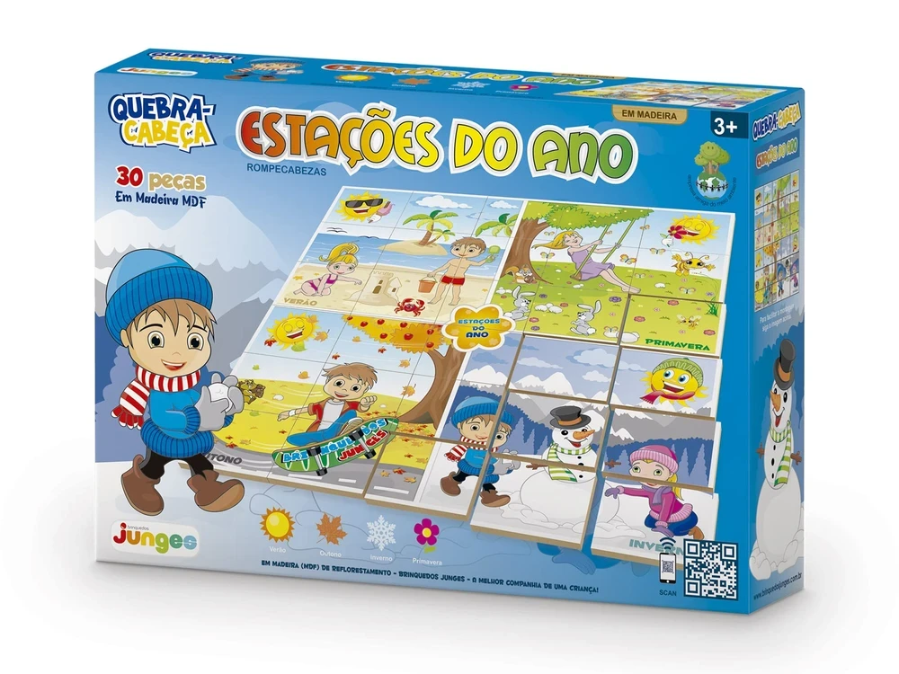 O Quebra-Cabeça Estações do Ano Junges transforma o aprendizado em diversão, incentivando a percepção visual, a coordenação e a imaginação das crianças de forma envolvente e lúdica.