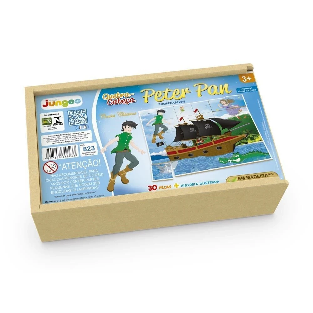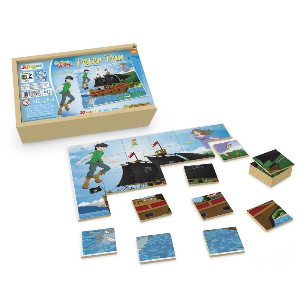 O clássico Peter Pan agora em forma de brincadeira educativa! Com 30 peças em madeira de reflorestamento (MDF), este quebra-cabeça da Junges traz uma ilustração vibrante diretamente impressa na madeira, garantindo durabilidade, qualidade e resistência.