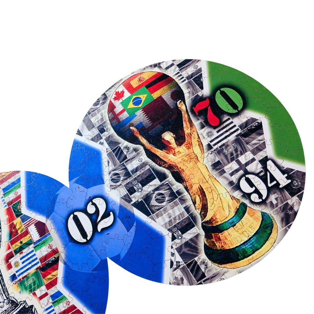 Mergulhe na emoção das cinco inesquecíveis conquistas do Brasil nas Copas do Mundo com esta peça exclusiva, feita em MDF de alta qualidade, resistente e com acabamento impecável. Com arte original criada por inteligência artificial, este quebra-cabeça homenageia o talento, a paixão e a história vitoriosa da seleção brasileira, trazendo detalhes vibrantes que representam cada um dos cinco títulos mundiais — de 1958 a 2002.