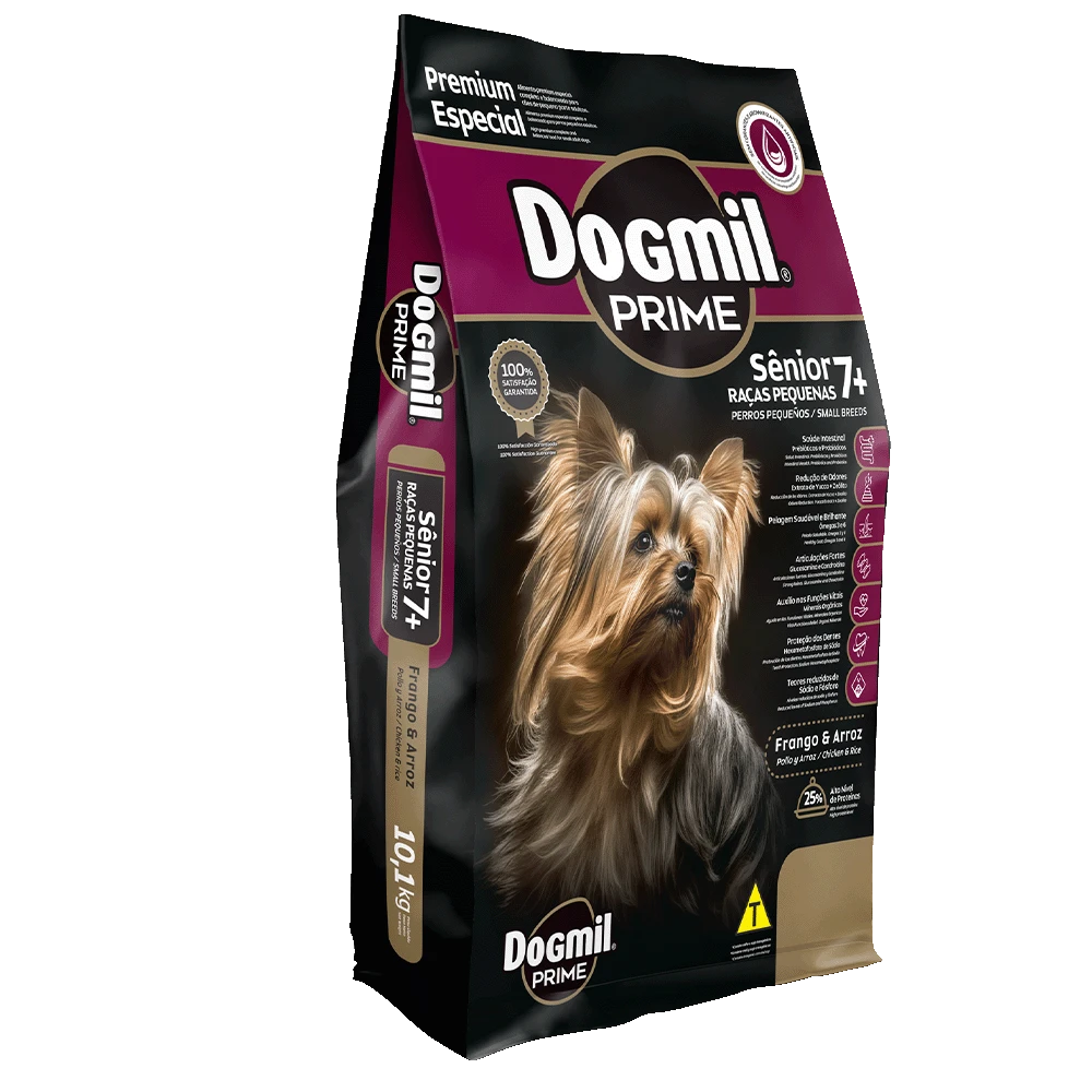 🐶 Ração Dogmil Prime para Cães de Pequeno Porte Sênior(7+) Sabor Frango & Arroz 25% Proteínas -10.1kg